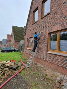 Seit der Einführung der Energieeinsparungsverordnung (EnEV) in den 1980er Jahren sind die Anforderungen an Wohngebäude im Bereich Dämmung regelmäßig gestiegen. Und auch die steigenden Energiepreise veranlassen Hausbesitzer zum Handeln. Durch das nachträgliche Einblasen von Dämmung beispielsweise in die Hohlschicht eines zweischaligen Mauerwerks lässt sich der U-Wert um bis zu ein Drittel senken, was wiederum eine Ersparnis bei den Heizkosten von ca. 20 % mit sich bringt. Die Kosten, die einem Kunden für diese Maßnahme entstehen, amortisieren sich innerhalb von fünf Jahren. Das Verfahren der Einblasdämmung (ca.2.500 € netto für ein EFH) ist im Vergleich mit anderen Dämmmaßnahmen, wie zum Beispiel Wärmedämmverbundsystemen oder neu Vorblenden (eine weitere Klinkerfasade mit einer dahinter liegenden Dämmung, Vormauern) was mehrere zehntausend Euro kostet, sehr günstig. Neben der Kostenersparnis, ist für den umweltbewussten Hauseigentümer auch die Tatsache, dass der Ausstoß von Kohlenstoffdioxid reduziert wird, eine Entscheidungshilfe. Durch modernste Technik mittels Einblasverfahren sind wir in der Lage unsere Dämmaufträge innerhalb von ein bis zwei Tagen zu erledi
